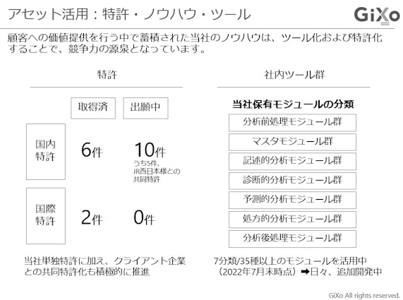 これらの知見を、有形無形に関わらず、情報として蓄積・整理し、さらにはモジュール化、ツール化および、特許化を推進してきました。その結果、2022年7月時点で18件の特許、35種のモジュールを開発するに至りました。