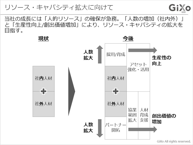 ギックスの状況に照らし合わせると、既存の事業においては「実行する」という決断は既に為されていて、どんどん推進していくというフェーズですよね。そうなった際に、課題になってくるのが人的リソースということだと思うんです。