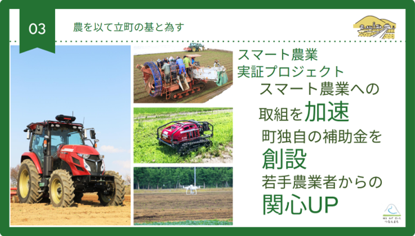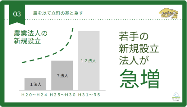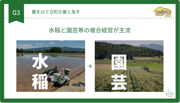 私が就任してから農業法人の新規設立にも力を入れてまいりまして、最近はその数も増えています。30代40代の農家が人を雇って農業をする形が全町にわたって広がるようになりました。