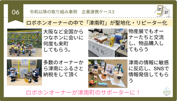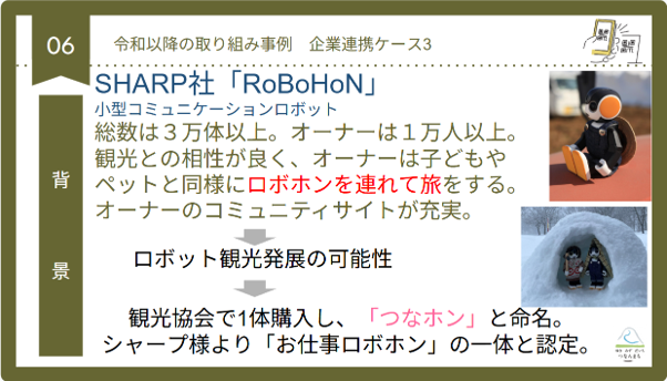 また、RoBoHoN(以下、ロボホン)を活用した取り組みを2019年頃から行っています。これは職員が熱い気持ちで始めたのですが、2019年頃からご当地ロボホンの取り組みをしていて「つなホン」と命名し、津南町の観光大使として活躍してもらっています。すると、「つなホン」に会いにロボホンオーナーさんが全国から訪れていただけるという、私たちが思ってもみなかったようなことが起こりました。