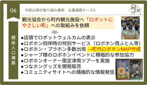 町の中でマップを作ったり、ロボホンフレンドリースポットを作ったりしながら、ロボホンオーナーさんウェルカムな町づくりも行っています。
