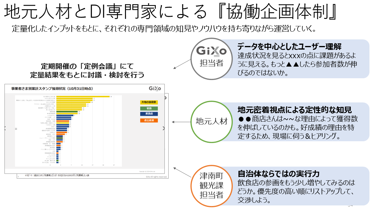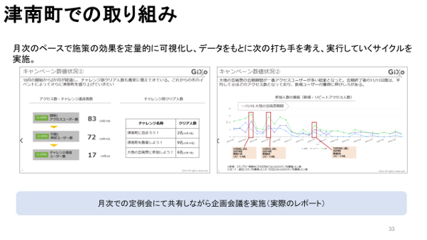 ギックス様と地元住民、町役場の職員が一緒になって取り組みの検証をしたり、そこから改善したり、という協働の体制をとることができた点が非常に良かったです。