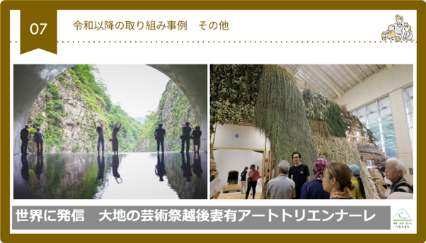津南町は国際芸術祭「大地の芸術祭」の開催地でもあります。こちらも先ほどお伝えしたMygruのデジタルスタンプ獲得スポットとしたことで、町内の回遊を促す効果を感じています。