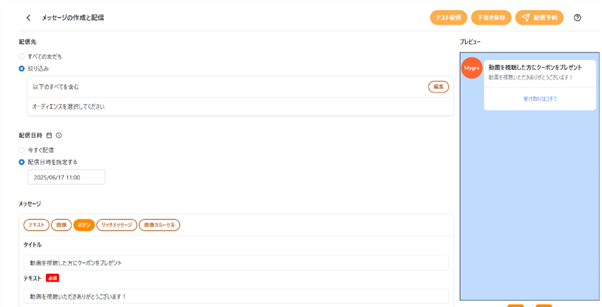 また、配信作業ではLINEのユーザーIDを抽出してメッセージングAPIを連携する工程は不要で、Mygruの管理画面上でセグメント分けから配信までスムーズに実行できます。