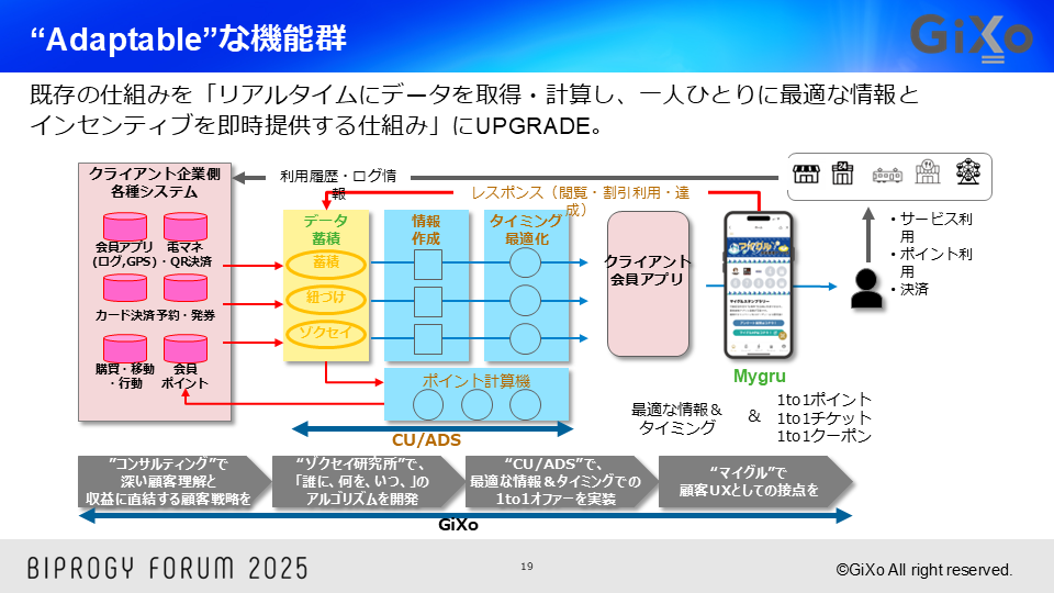 今後、こうした”1to1のポイントプログラム”が当たり前になっていくと考えており、それを実現させるための外付けの機能としてCU/ADSを開発しております。
