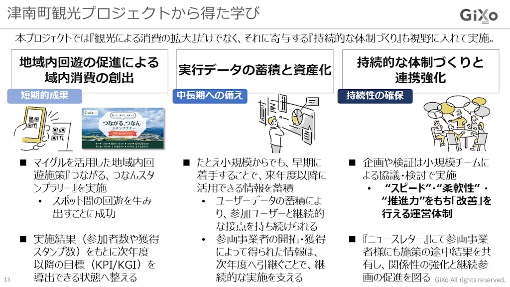 そうした組織文化の中で、職員の方々だけでなく、地元の方々も巻き込んでいく——今回のスタンプラリー施策のようなそこまで大きくはないデータであっても、町民の皆さんと一緒に解釈し合いながら和気藹々とアイデアを出して発信していくことができれば、よりいっそう地域の活性化につながっていくのではないかと考えています。