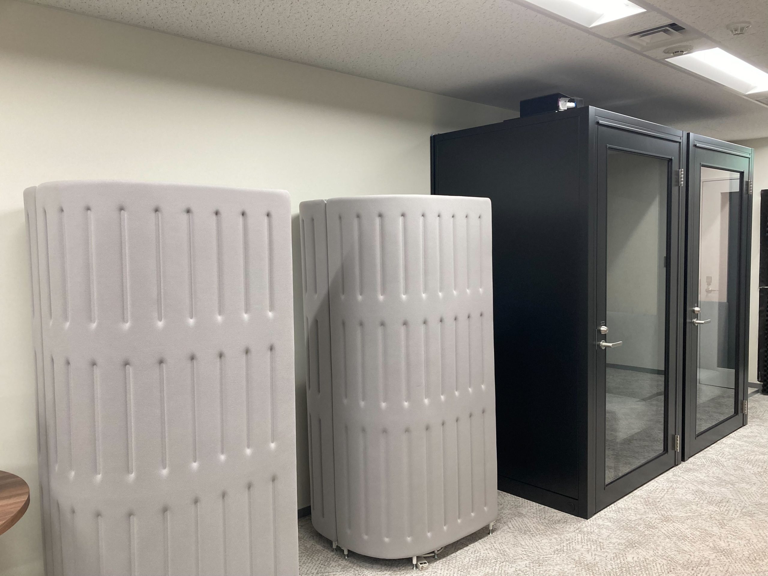 目下の課題だった会議室は、少人数の利用に適した部屋を増やすだけでなく、1人でのオンライン会議や集中作業にも使えるフォンブースを複数導入し、用途に応じて選べる構成としました。