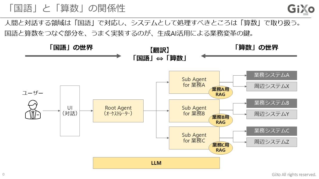 特に、昨今は生成AI=LLMという風に思われている節もありますから、技術的に誤解を招かないように「Root Agent」と「Sub Agent」という表現を使っています。