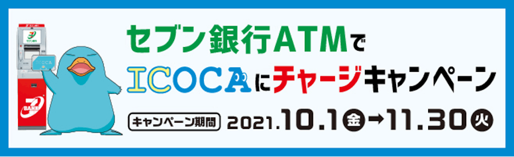 キャンペーン詳細:https://www.jr-odekake.net/icoca/campaign/icoca_sevenbank_atm_cp/