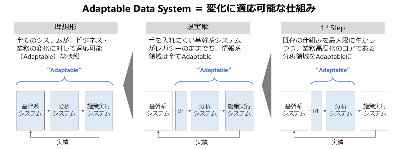 こうした考えのもと、当社は「変化に適応可能な仕組み=Adaptable Data System:略称ADS(アッズ)」を、新たなフレームワークとして提唱します。