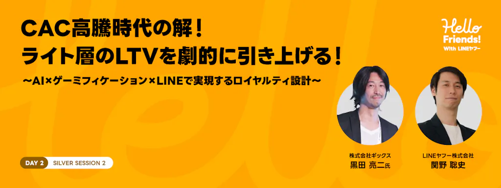 タイトル:CAC高騰時代の解!ライト層のLTVを劇的に引き上げる!~AI×ゲーミフィケーション×LINEで実現するロイヤルティ設計~